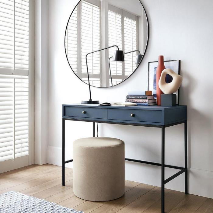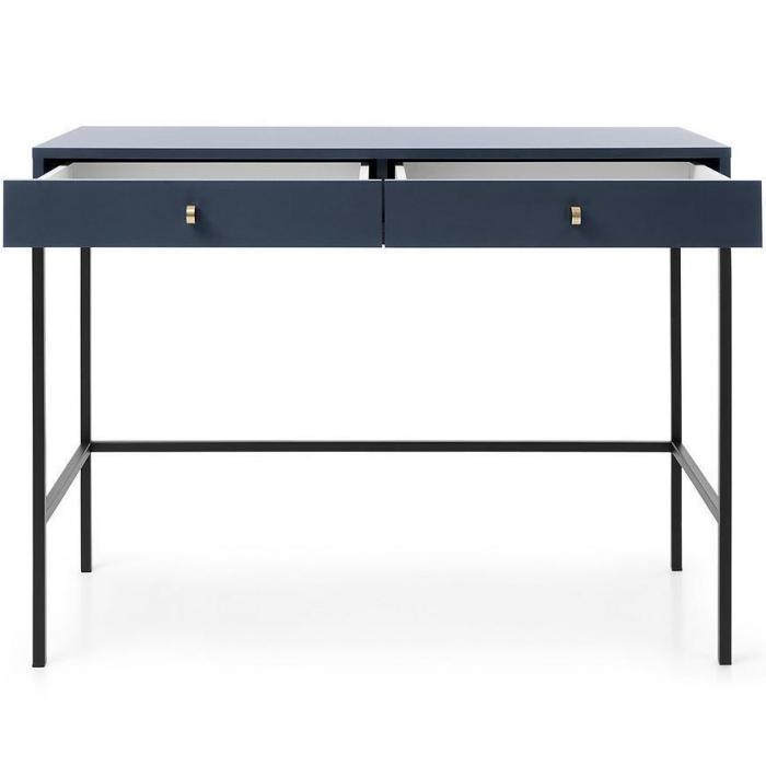 Kolekcja komód Mono to meble utrzymane w stylu loftowym, ultra nowoczesne, które świetnie sprawdzą się w nowoczesnych, industrialnych wnętrzach. Mocne, ale jednocześnie stłumione kolory w połączeniu z zachowanym minimalizmem to świente rozwiązanie do wnętrz, w których chcemy zachować spójność wystroju, ale także podkreślić jego oryginalny charakter. Dzięki temu, że konstrukcja jest umieszczona na wysokich nóżkach umożliwia nam odkurzenie czy umycie podłogi pod meblami. Toaletka posiada dwie wysuwane szuflady, w których możemy umieścić drobiazgi (kosmetyki, parasol okulary przeciwsłoneczne, klucze). Toaletka może być uzupełnieniem aranżacji w sypialni, salonie, ale również w przedpokoju (pełniąc rolę konsolki).