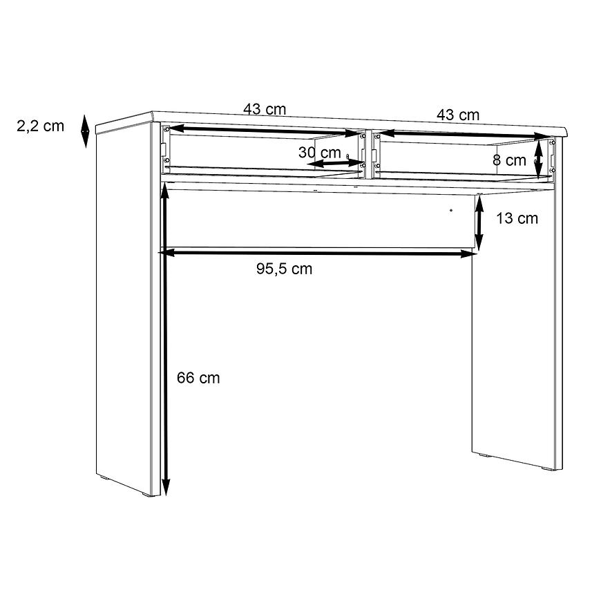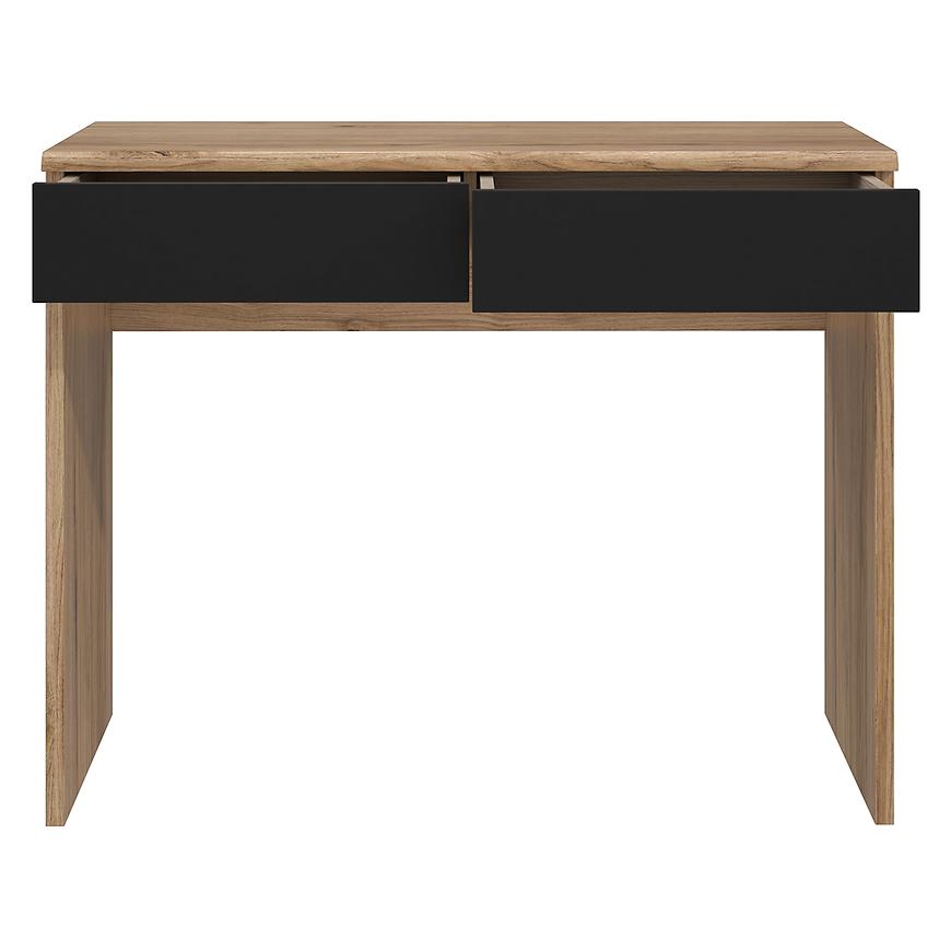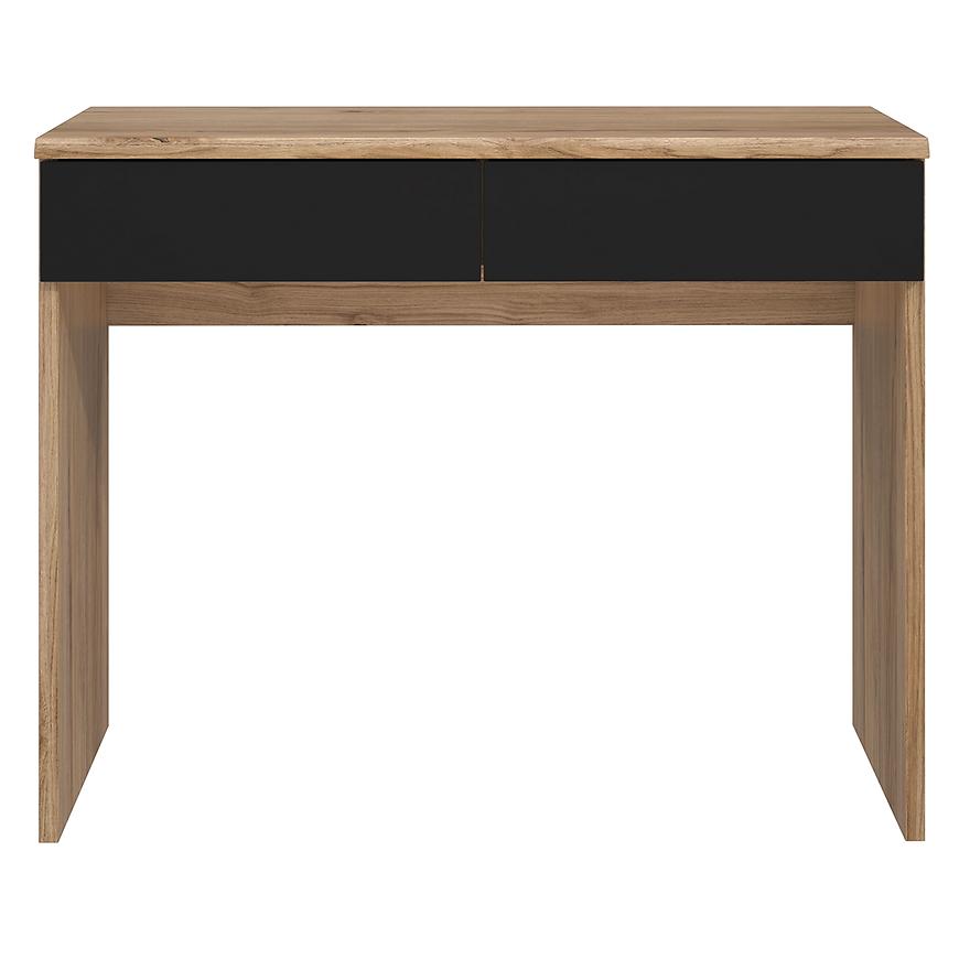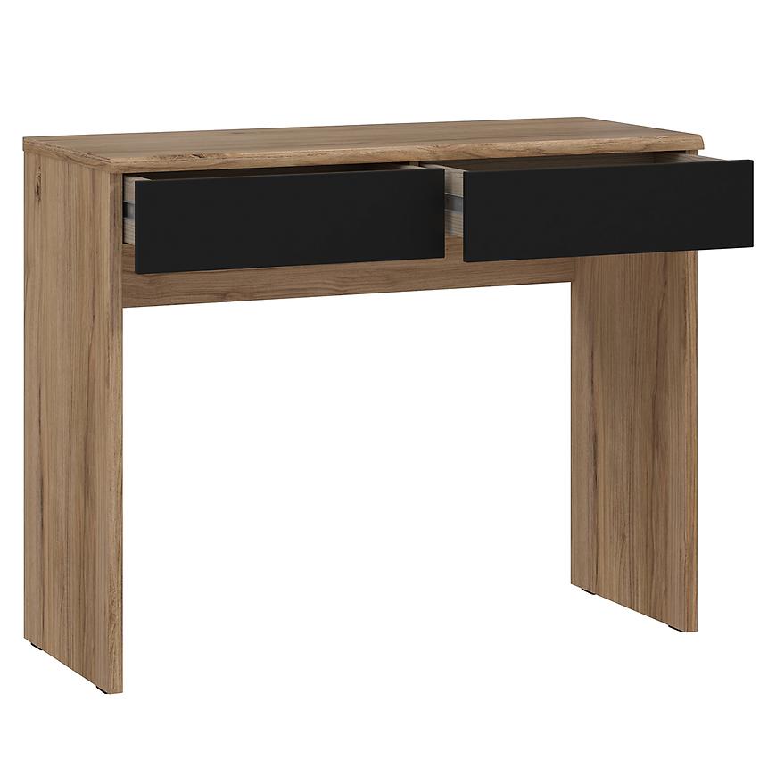 Model Nemezy dąb catania/czarny zachwyca prostotą, która idzie w parze z praktycznością. Dwie pojemne szuflady umożliwiają przechowywanie kosmetyków, biżuterii czy drobnych akcesoriów. Szeroki blat zapewnia wygodną przestrzeń do codziennego użytkowania – idealny zarówno jako toaletka, jak i biurko do pracy przy laptopie.