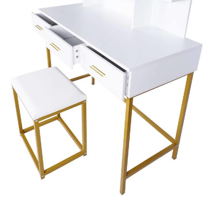 Wykonana z płyty wiórowej laminowanej, posiada trzy szuflady i półki do przechowywanie niezbędnych przedmiotów.