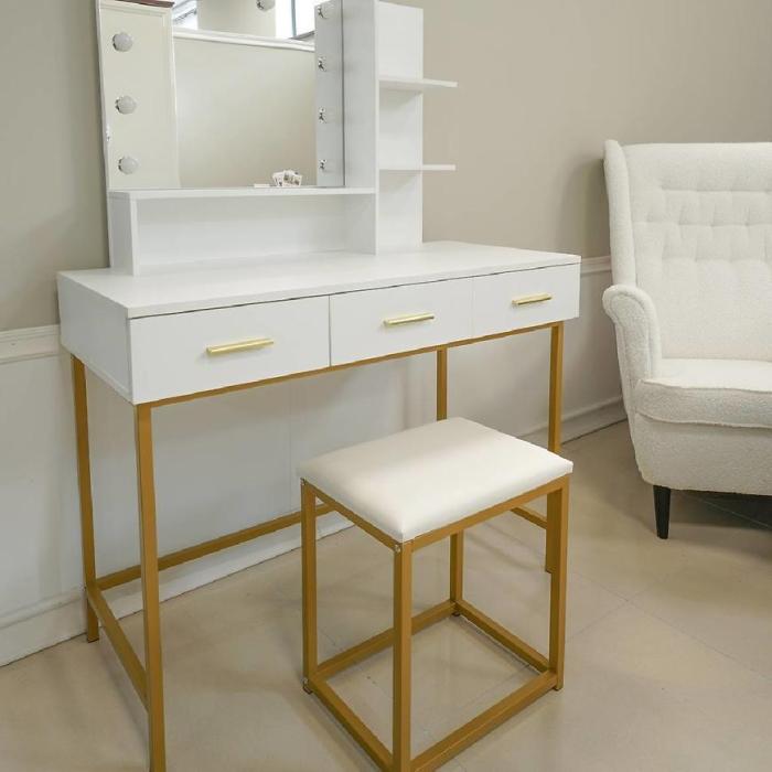 Toaletka Selena w nowoczesnym stylu z lustrem i oświetleniem, to mebel który wpasuje się w klasyczne i nowoczesne wnętrza.