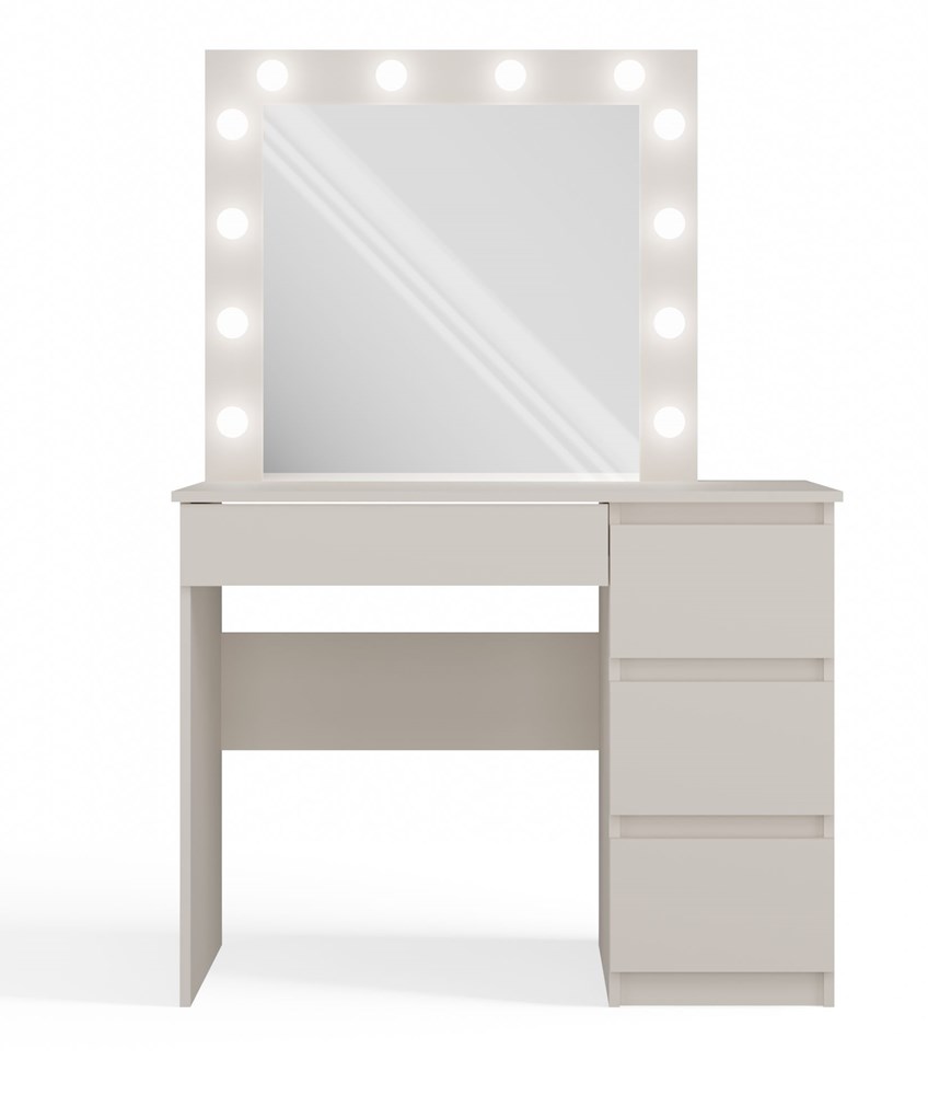 Toaletka Star prawe w kolorze kaszmir z lustrem i dedykowanym oświetleniem LED to nie tylko mebel, ale prawdziwy oaza komfortu dla osób, które pragną otaczać się pięknem we wszystkich aspektach swojego życia. Wykonana z płyty wiórowej laminowanej o solidnej grubości, ta toaletka nie tylko zachwyca swoim eleganckim wyglądem, ale także oferuje funkcjonalność na najwyższym poziomie.