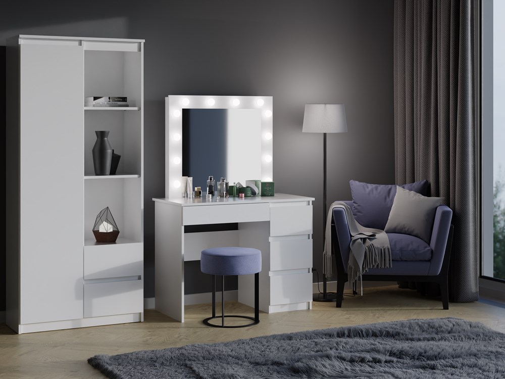 Toaletka Star prawe z lustrem i dedykowanym oświetleniem LED to nie tylko mebel, ale prawdziwy oaza komfortu dla osób, które pragną otaczać się pięknem we wszystkich aspektach swojego życia. Wykonana z płyty wiórowej laminowanej o solidnej grubości, ta toaletka nie tylko zachwyca swoim eleganckim wyglądem, ale także oferuje funkcjonalność na najwyższym poziomie.