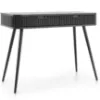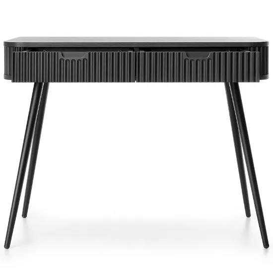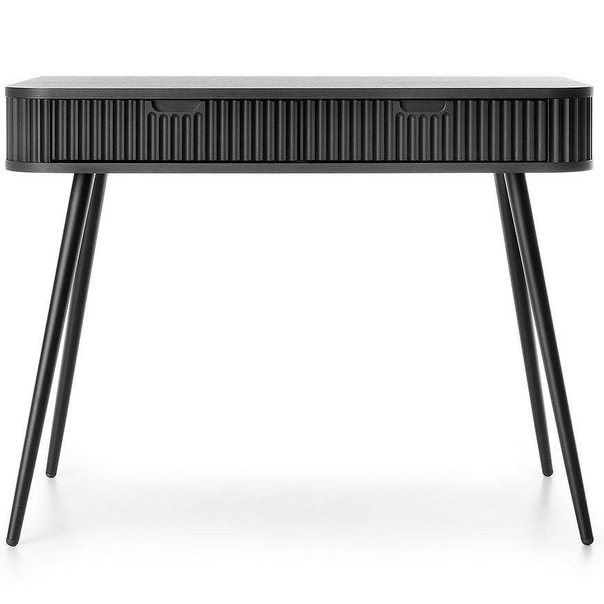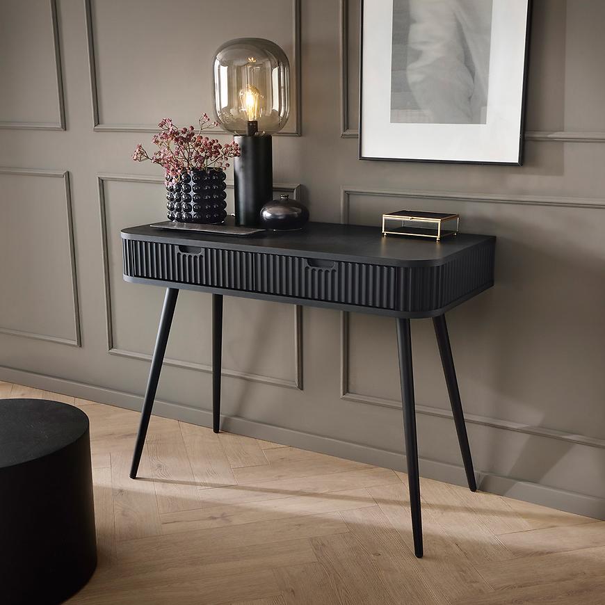 Toaletka T Zova to elegancki i nowoczesny mebel, który łączy funkcjonalność z minimalistycznym designem. Dzięki matowemu, czarnemu wykończeniu oraz prostym liniom doskonale wpisuje się w aktualne trendy wnętrzarskie, nadając pomieszczeniu lekkości i stylowego charakteru.