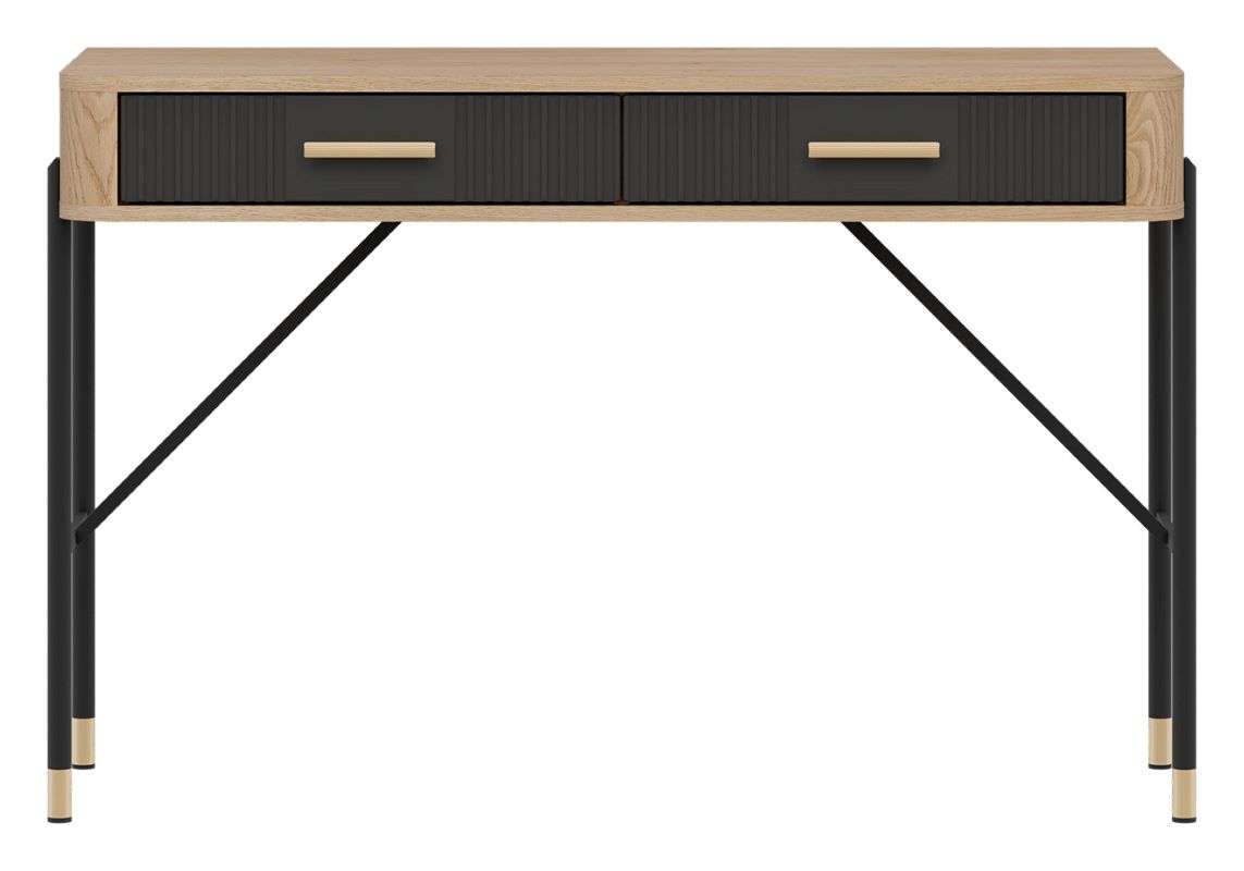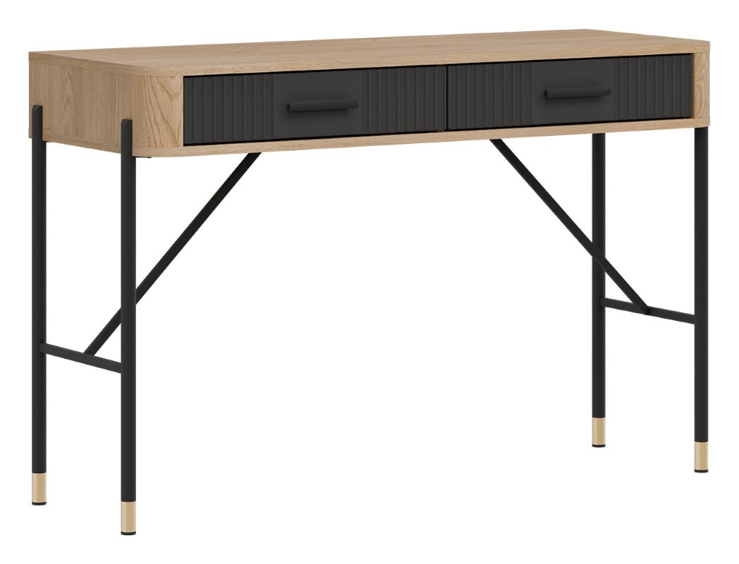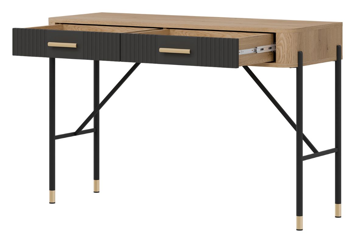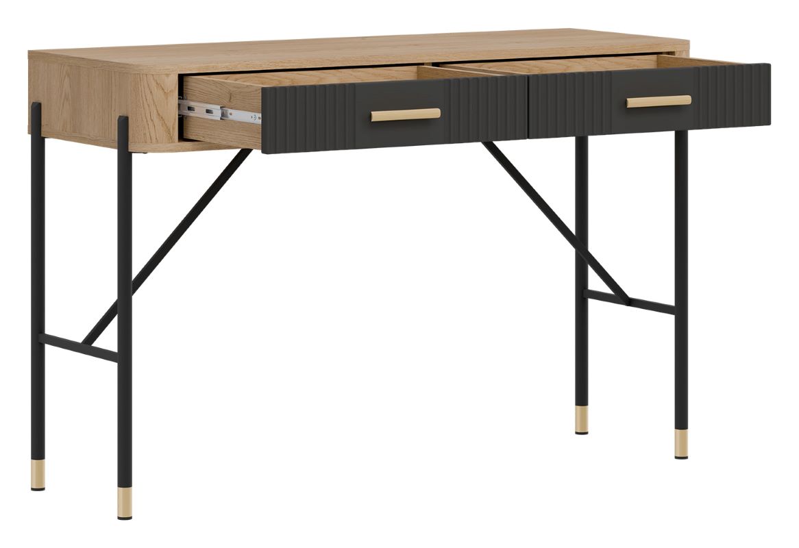 Dante DT19 posiada 2 pojemne szuflady, które ułatwiają organizację kosmetyków, przyborów do makijażu i drobnych przedmiotów codziennego użytku. Matowe fronty w kolorze antracyt dodają elegancji, a solidna konstrukcja zapewnia stabilność podczas użytkowania.