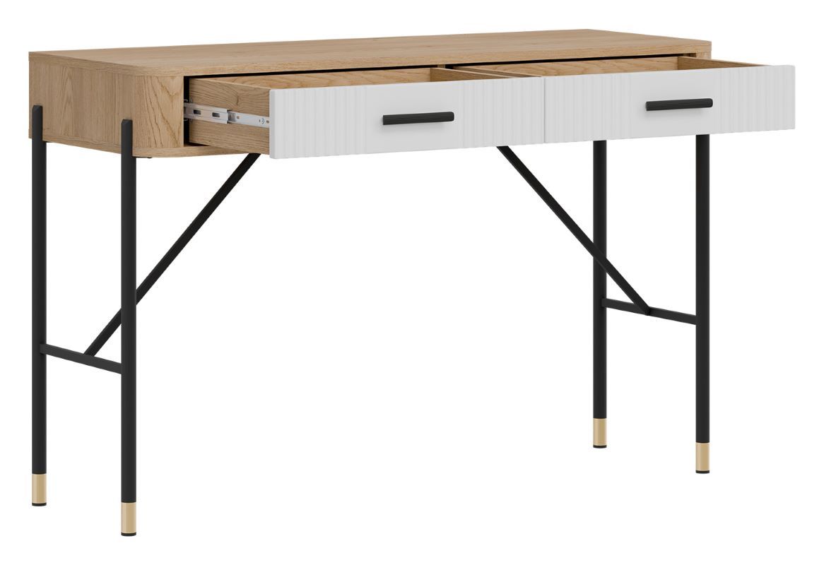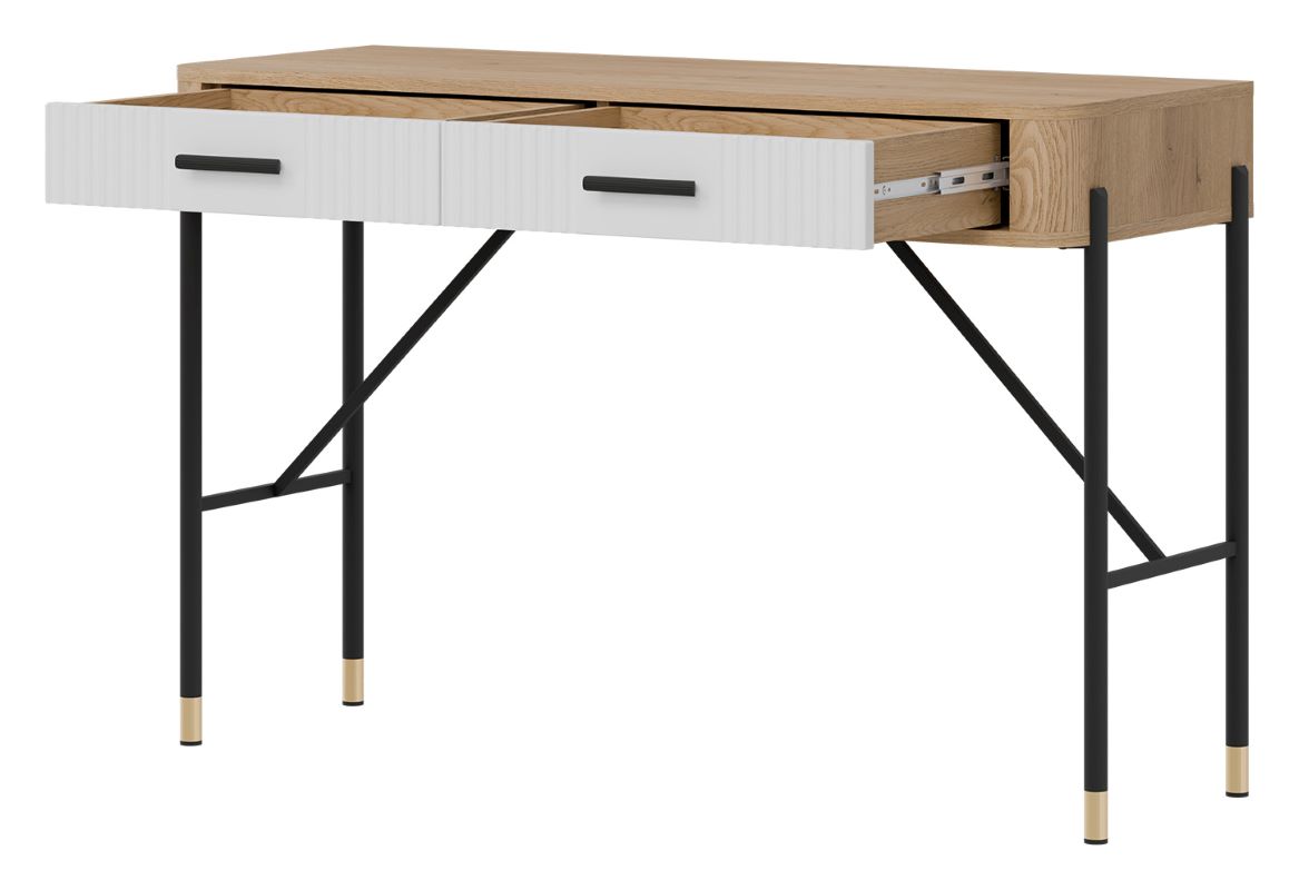 Model Dante DT19 wyposażony jest w dwie pojemne szuflady, które pomieszczą kosmetyki, biżuterię, akcesoria do makijażu czy drobiazgi osobiste. Szuflady poruszają się płynnie i cicho, zapewniając komfort codziennego użytkowania.