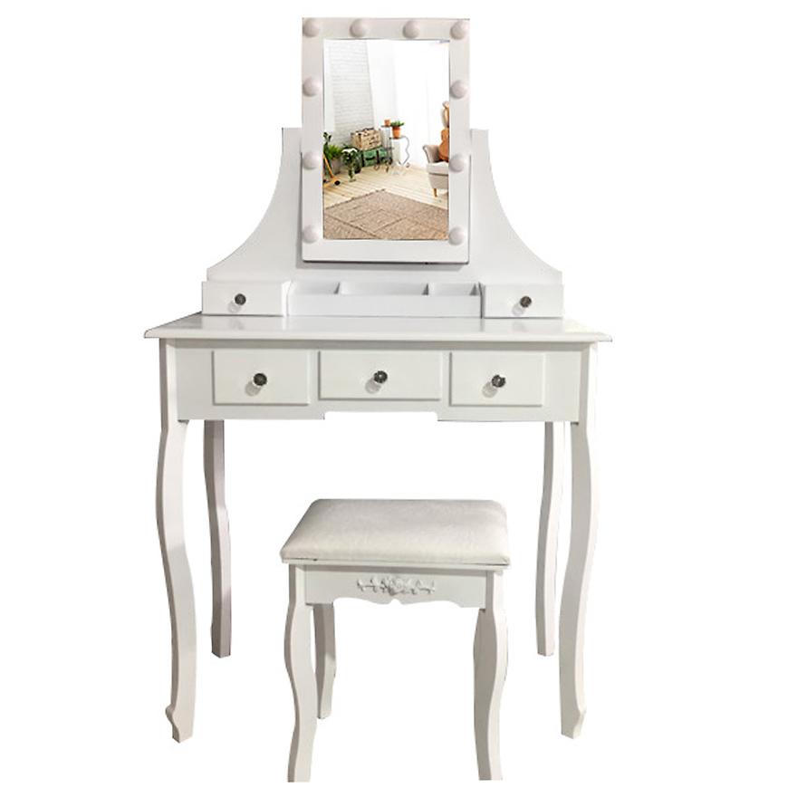 Toaletka z taboretem Sylvia to elegancki i funkcjonalny mebel, który doskonale sprawdzi się w każdej sypialni czy garderobie. Wykonana z wysokiej jakości płyty wiórowej laminowanej, zarówno w korpusie, jak i frontach, łączy trwałość z estetyką klasycznego designu. Jej matowe wykończenie w ponadczasowej bieli nadaje wnętrzu lekkości i harmonii, a uniwersalna orientacja pozwala na dopasowanie mebla do różnych układów pomieszczeń.