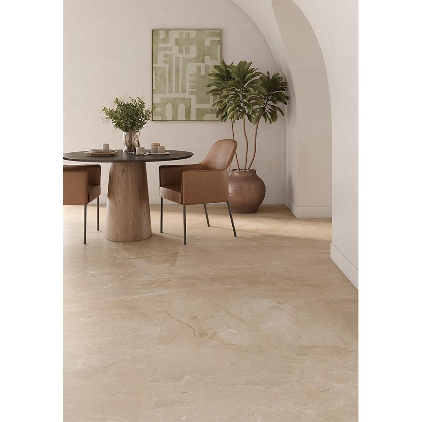 Beżowy kolor oraz imitacja marmuru nadają wnętrzom nowoczesny i stylowy charakter. Płytka Toscana Arena Mat łączy estetykę naturalnego kamienia z praktycznymi właściwościami ceramiki. Matowe wykończenie zapewnia przyjemny efekt wizualny, łatwość pielęgnacji oraz harmonijną atmosferę w każdej przestrzeni.
