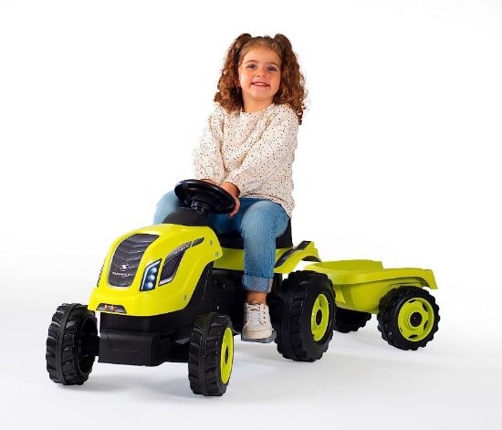 Traktor ma długość 142 cm i maksymalne obciążenie do 50 kg, co czyni go idealnym wyborem dla aktywnych dzieci marzących o przygodach na wiejskiej farmie.