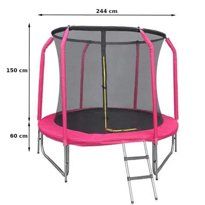 Trampolina o średnicy 244cm to świetny pomysł do sprawienia dzieciom frajdy, jest to idealna motywacja dla nas do spędzenia aktywnie wolnego czasu. Trampolina przeznaczona jest dla dorosłych oraz dla dzieci, ważne jednak by obciążenie nie przekraczało 150kg.