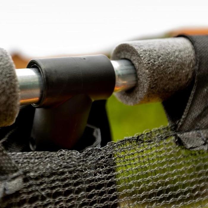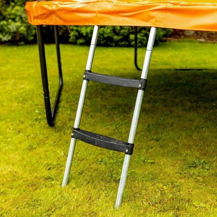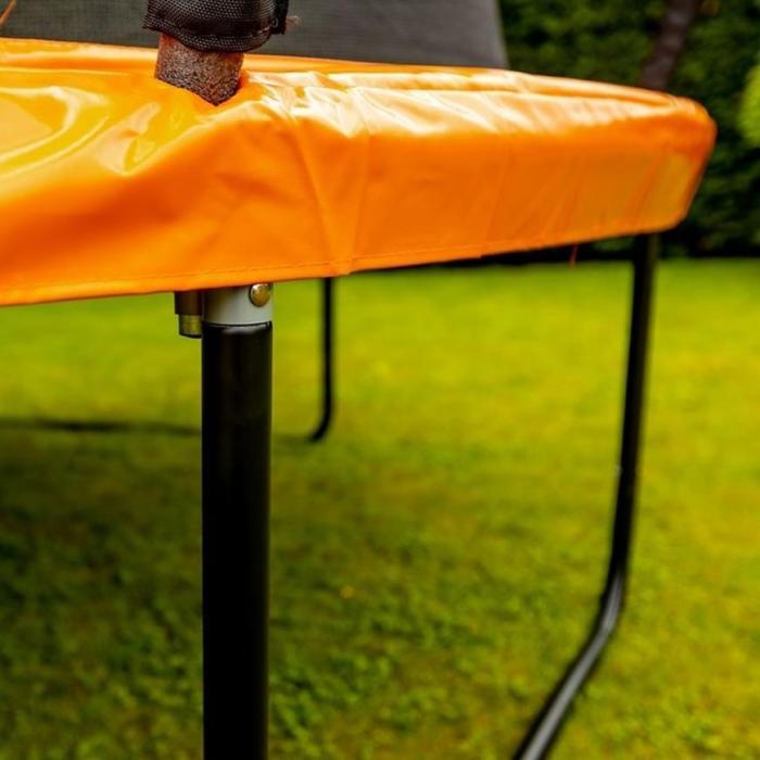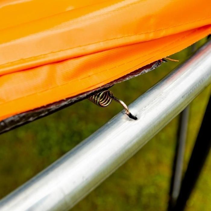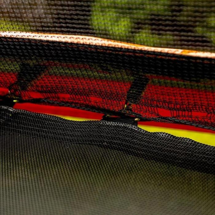 Wejście trampoliny zostało zabezpieczone zamkiem oraz klamrą, co zapewni bezpieczeństwo podczas użytkowania. Dzięki montażowi siatki wewnątrz, zmniejszone jest ryzyko wypadków oraz naskoku na sprężyny. Siatka powinna być odpowiednio napięta, aby spełniała swoje funkcje.