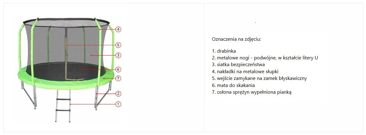 - zalecany jest nadzór osoby pełnoletniej podczas korzystania z trampoliny przez dzieci