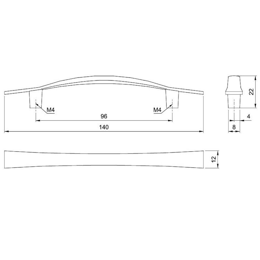 Uchwyt meblowy A002-96 w kolorze chrom to elegancki i funkcjonalny element wykończenia mebli, wykonany z trwałego materiału ZnAl. Jego długość wynosi 140 mm, wysokość 22 mm, a szerokość 12 mm, przy rozstawie otworów montażowych 96 mm, co zapewnia stabilne i pewne mocowanie. Przykręcany sposób montażu umożliwia łatwą instalację, a chromowane wykończenie nadaje meblom nowoczesny, stylowy wygląd, idealnie komponując się z różnymi aranżacjami wnętrz.