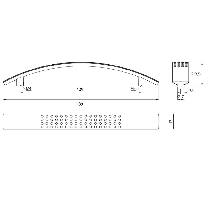 Uchwyt meblowy A004-128 w chromowanym wykończeniu łączy w sobie elegancję i funkcjonalność, wykonany z trwałego stopu ZnAl. Jego długość wynosi 159 mm, wysokość 29,5 mm, a szerokość 17 mm, z rozstawem otworów montażowych 128 mm, co zapewnia stabilny i pewny montaż. Przykręcany sposób montażu ułatwia instalację, a połyskująca, chromowana powierzchnia dodaje meblom nowoczesnego charakteru, idealnie komponując się z różnymi stylami wnętrz.