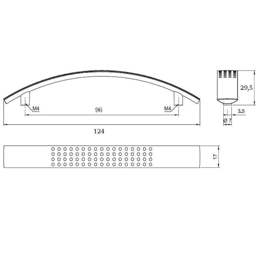 Uchwyt meblowy A004-96-UN87 w wykończeniu satyna to elegancki i funkcjonalny element wyposażenia mebli, który łączy nowoczesny design z praktycznością. Wykonany z trwałego stopu ZnAl, uchwyt ma długość 124 mm, wysokość 29,5 mm i szerokość 17 mm, a jego rozstaw otworów montażowych wynosi 96 mm, co ułatwia stabilne i pewne przykręcenie do frontów szuflad i drzwiczek. Lekka konstrukcja o wadze 0,1 kg zapewnia wygodne użytkowanie, a satynowe wykończenie nadaje meblom subtelny, estetyczny wygląd pasujący do wielu aranżacji wnętrz.