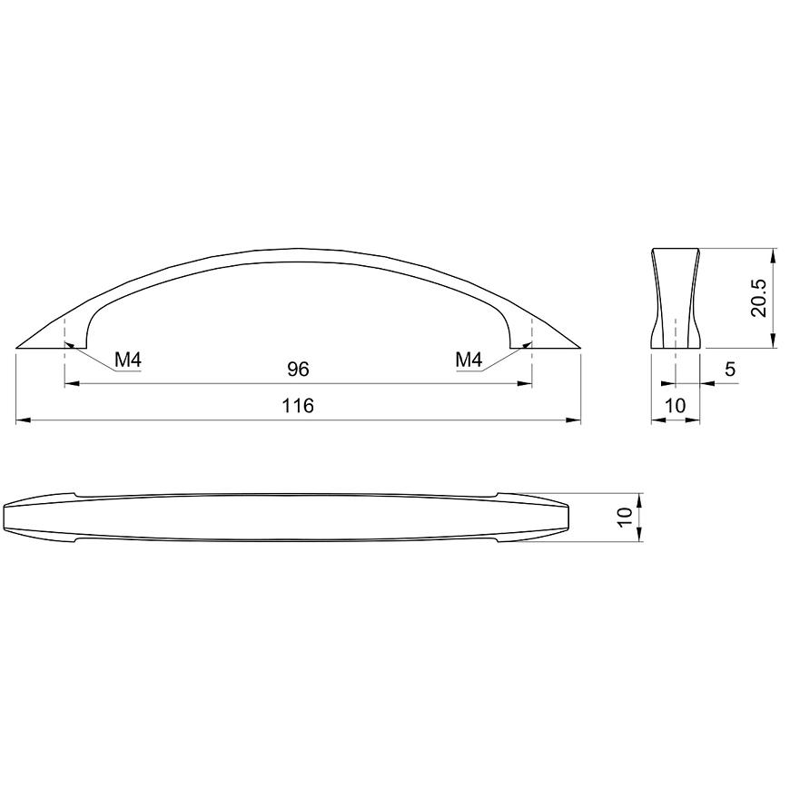 Uchwyt meblowy A026-96 w wykończeniu chromowym to praktyczny i elegancki element wyposażenia mebli, wykonany z trwałego stopu ZnAl. Ma szerokość 10 mm, wysokość 20,5 mm i długość 116 mm, a rozstaw otworów montażowych wynosi 96 mm, co zapewnia stabilny i pewny montaż. Sposób montażu przykręcany gwarantuje trwałe i wygodne użytkowanie, a chromowana powierzchnia nadaje meblom nowoczesny i estetyczny wygląd.