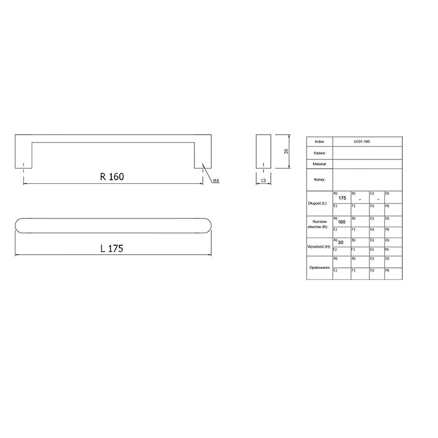 Nowoczesny uchwyt meblowy U101-160 w kolorze czarny mat to elegancki detal, który doda charakteru szafkom i szufladom. Wykonany z trwałego materiału ZnAl, zapewnia wytrzymałość i komfort użytkowania. Uchwyt ma szerokość 175 mm i wysokość 30 mm, a montaż jest prosty dzięki przykręcanemu sposobowi mocowania. Funkcjonalny i dekoracyjny, idealnie łączy nowoczesny design z praktycznym zastosowaniem w każdym wnętrzu.