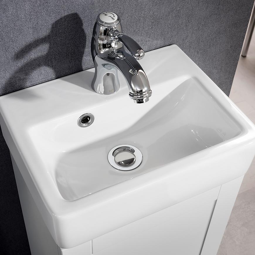 Jest to kompaktowa umywalka idealna do mniejszych łazienek lub jako dodatkowe zlewozmywakowe rozwiązanie w pomieszczeniu gospodarczym.