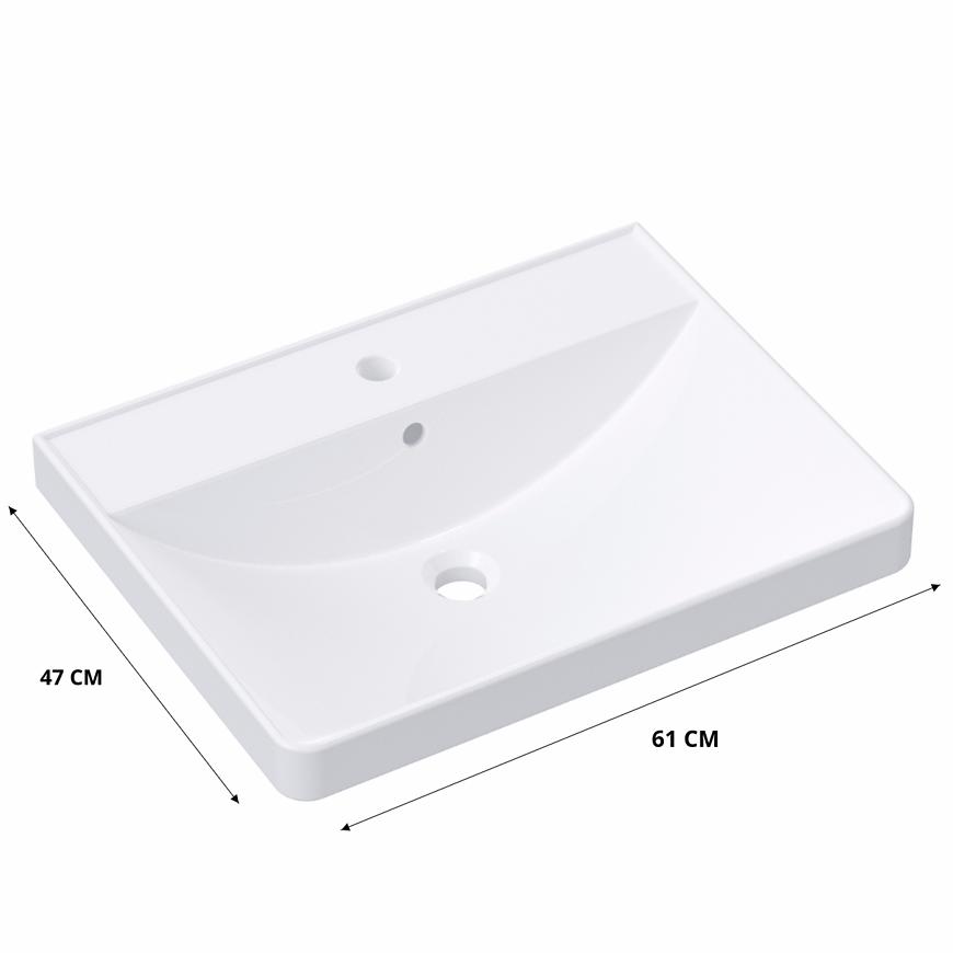 Umywalka Corso 60 cm to funkcjonalna i elegancka ceramika łazienkowa w klasycznej bieli. Wymiary 61×47×20 cm sprawiają, że doskonale sprawdzi się w średnich i większych łazienkach, oferując komfort użytkowania. Model z kolekcji CORSO posiada otwór na baterię oraz przelew, co ułatwia montaż i codzienne korzystanie. Umywalka jest meblowa, co pozwala na estetyczne wkomponowanie jej w wybrany zestaw mebli łazienkowych. Bateria nie jest w zestawie. Elegancka, praktyczna i nowoczesna forma nadaje łazience harmonijny charakter.