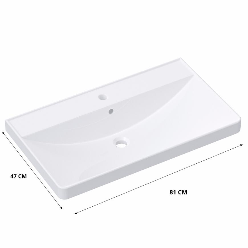 Elegancka umywalka Corso 80 w kolorze białym, wykonana z wytrzymałej ceramiki, przeznaczona do łazienki. Meblowy typ mocowania umożliwia łatwe zamontowanie na szafce. Wymiary: szerokość 81 cm, wysokość 20 cm, głębokość 47 cm. Posiada otwór na baterię oraz przelew, co zwiększa komfort użytkowania. Bateria nie jest w zestawie. Idealne połączenie funkcjonalności i nowoczesnego designu.