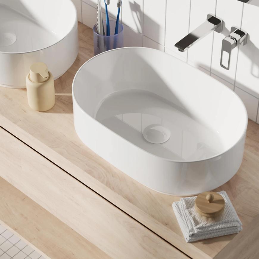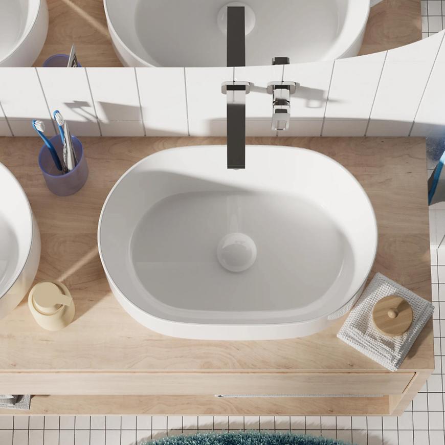 Umywalka nablatowa Alma Rea-U0600 marki REA wykonana jest z wysokiej jakości ceramiki w klasycznym białym kolorze, który doskonale wpasowuje się w nowoczesne i tradycyjne wnętrza łazienkowe. Jej wymiary 57 cm szerokości, 36 cm głębokości oraz wysokość 16 cm zapewniają komfortowe użytkowanie i wygodę podczas codziennej pielęgnacji. Model nie posiada otworu na baterię ani przelewu, co umożliwia swobodny dobór armatury według indywidualnych potrzeb. Montaż odbywa się w formie nablatowej, dzięki czemu umywalka staje się eleganckim elementem dekoracyjnym oraz praktycznym wyposażeniem łazienki. Seria Alma łączy estetykę i funkcjonalność, gwarantując trwałość oraz łatwość utrzymania w czystości.