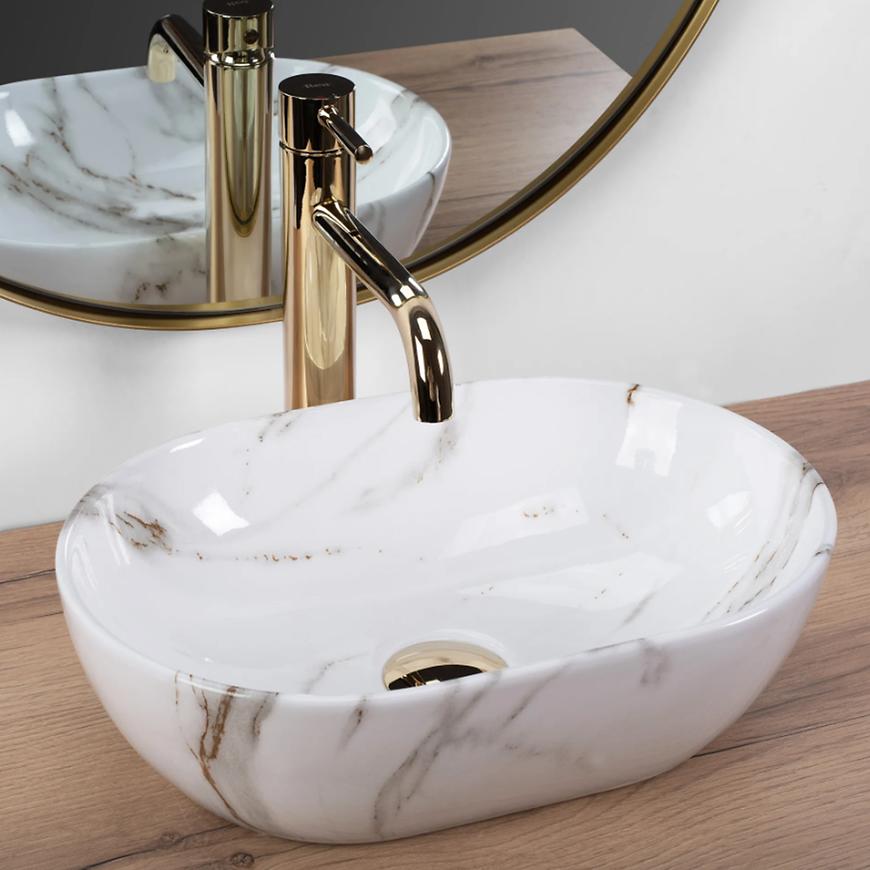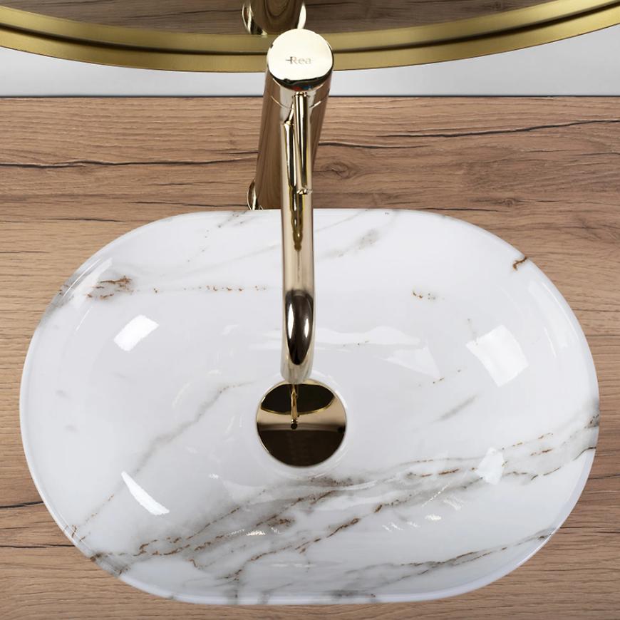 Umywalka nablatowa Amelia Mini Aiax Shiny Rea-U9107 marki REA wykonana jest z wysokiej jakości ceramiki w klasycznym białym kolorze, co zapewnia elegancki wygląd i łatwość w utrzymaniu czystości. Kompaktowe wymiary 38 cm szerokości, 26 cm głębokości i 12 cm wysokości sprawiają, że idealnie sprawdzi się w małych łazienkach lub toaletach, zapewniając wygodę użytkowania bez zajmowania zbyt wiele miejsca. Model nie posiada otworu na baterię ani przelewu, co daje możliwość dowolnego doboru armatury. Montaż nablatowy pozwala na efektowną ekspozycję umywalki jako centralnego elementu łazienki. Seria Amelia łączy nowoczesny design z funkcjonalnością i trwałością.
