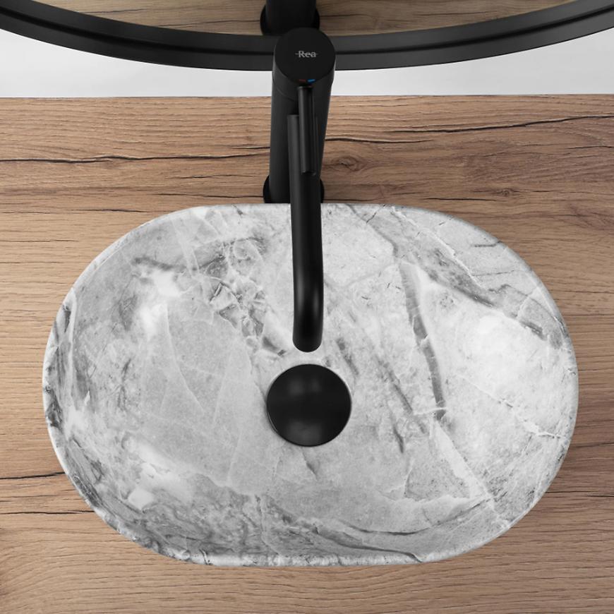 Umywalka nablatowa Amelia Mini Stone Matt Rea-U9109 marki REA wykonana jest z trwałej ceramiki w modnym kolorze stone matt, który nadaje łazience nowoczesny i elegancki charakter. Kompaktowe wymiary 38 cm szerokości, 26 cm głębokości i 12 cm wysokości sprawiają, że doskonale sprawdzi się w mniejszych łazienkach lub toaletach, zapewniając funkcjonalność przy minimalnym zajmowanym miejscu. Model nie posiada otworu na baterię ani przelewu, co umożliwia dowolny dobór armatury. Montaż nablatowy podkreśla stylowy wygląd umywalki, a seria Amelia łączy minimalistyczny design z praktycznym użytkowaniem i wytrzymałością materiału.