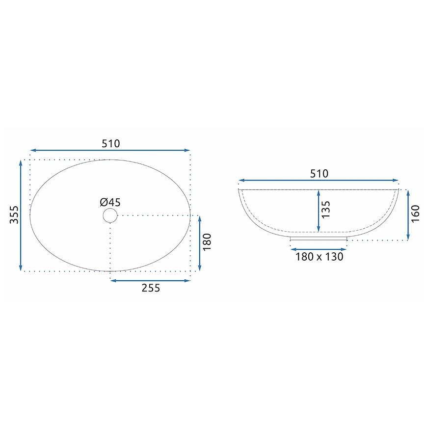 Wymiary umywalki wynoszą 51 cm szerokości, 35,5 cm głębokości i 16 cm wysokości. Taki rozmiar sprawia, że idealnie nadaje się do montażu na blatach w łazienkach o różnej wielkości – zarówno w przestronnych pomieszczeniach, jak i w kompaktowych łazienkach, gdzie liczy się funkcjonalne zagospodarowanie przestrzeni.