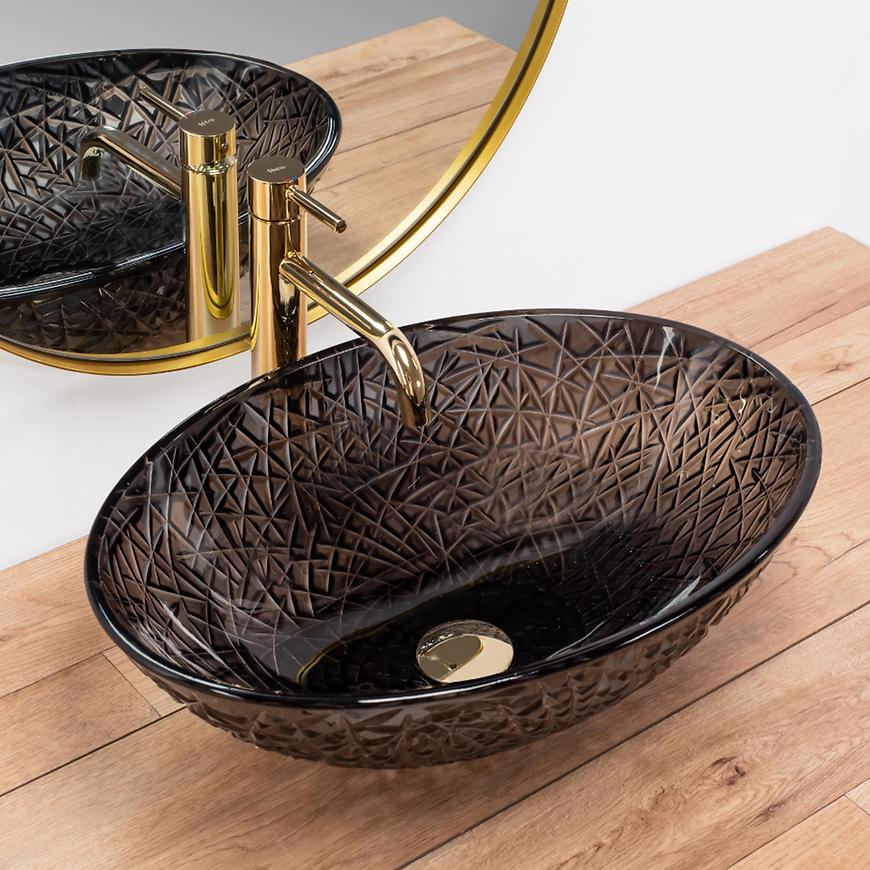 Szkło nadaje umywalce lekkości i subtelnego połysku, który w połączeniu z czernią tworzy wyjątkowy efekt designerski. Dzięki zastosowaniu trwałego szkła użytkownik może cieszyć się pięknym wyglądem umywalki przez wiele lat.