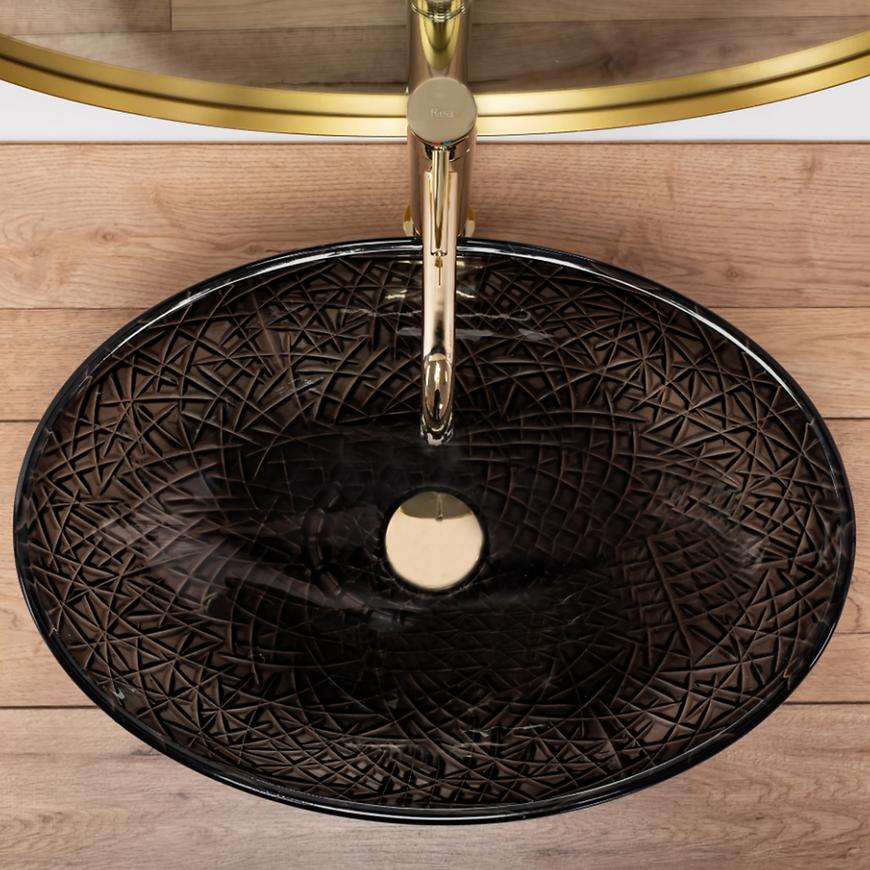 Umywalka Frost Black Rea-U5071 jest umywalką nablatową, co oznacza, że montuje się ją na powierzchni blatu, a nie wpuszcza w niego. Taki sposób instalacji ułatwia czyszczenie i pozwala wyeksponować elegancki kształt i materiał.