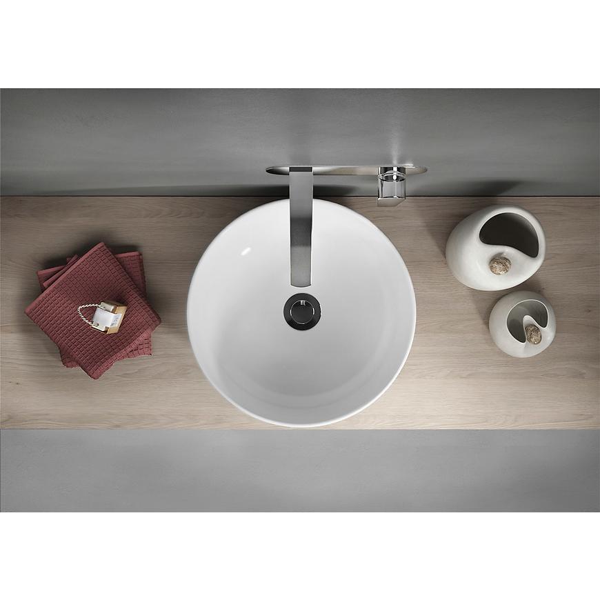Umywalka nablatowa Moduo idealnie wpisze się w nowoczesne wnętrza i z pewnością będzie ozdobą i gustownym uzupełnieniem wyposażenia łazienki szczególnie tej wykończonej w minimalistycznym stylu o niewielkiej powierzchni.