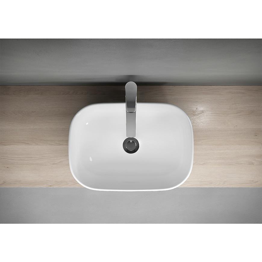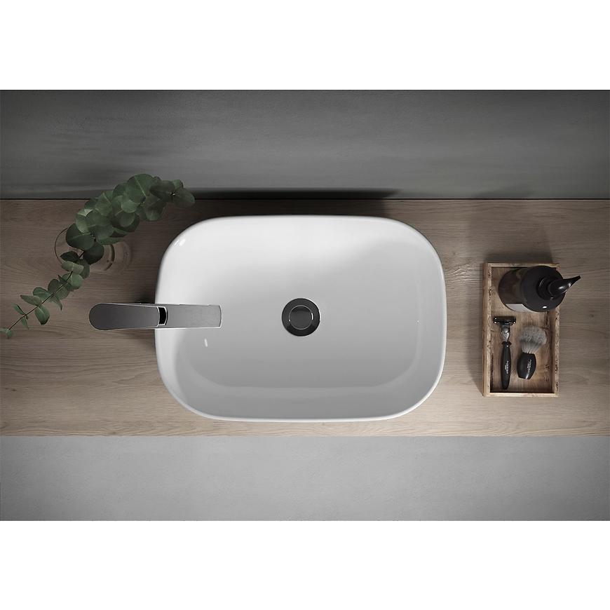 Umywalka nablatowa Moduo idealnie wpisze się w nowoczesne wnętrza i z pewnością będzie ozdobą i gustownym uzupełnieniem wyposażenia łazienki szczególnie tej wykończonej w minimalistycznym stylu o niewielkiej powierzchni.