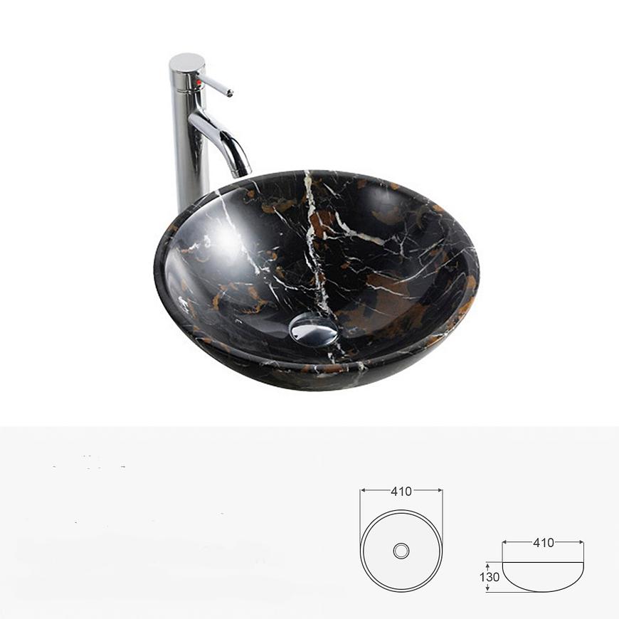 Umywalka Stone Dark wykonana w kolorze czarnym. Materiał wykonania to granit. Umywalka jest nablatowa.