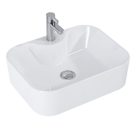 Umywalka Sonia jest wyposażona w mocowanie nablatowe, co umożliwia łatwy montaż na blacie lub szafce.