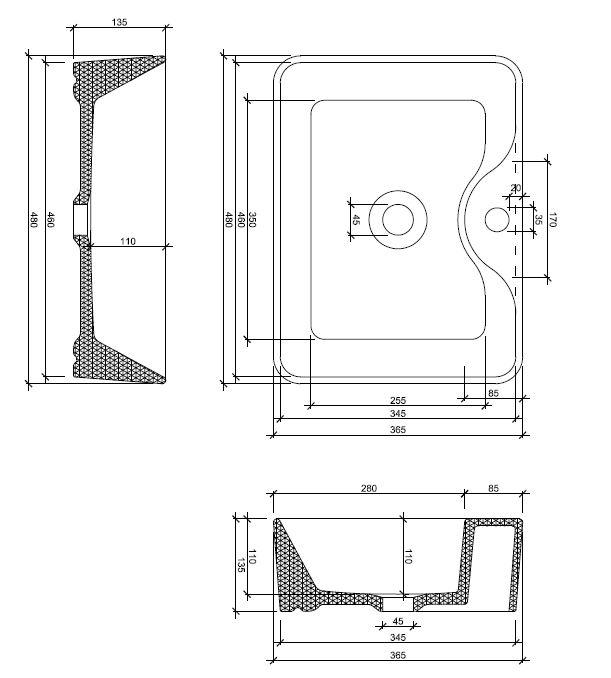 Umywalka Sonia ma kompaktowe wymiary, jej szerokość wynosi 48 cm, wysokość 13 cm, a głębokość 37 cm, co czyni ją idealnym rozwiązaniem do mniejszych łazienek, gdzie każdy centymetr przestrzeni ma znaczenie.