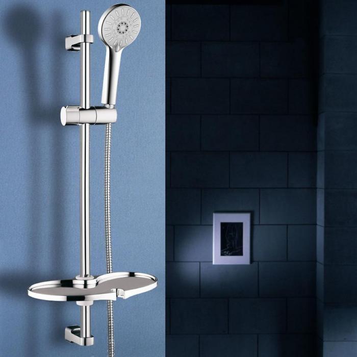 Rączka natryskowa z tworzywa sztucznego jest lekka i poręczna, co pozwala na wygodne sterowanie strumieniem wody. W zestawie znajduje się także praktyczna mydelniczka/półka, która ułatwia przechowywanie kosmetyków i zachowanie porządku w kabinie prysznicowej.