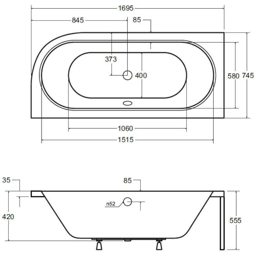Wanna wykonana jest z wysokiej jakości akrylu sanitarnego, który jest trwały, odporny na zarysowania i przyjemny w dotyku. Materiał utrzymuje temperaturę wody na dłużej, a minimalistyczny design sprawia, że produkt pasuje do nowoczesnych i klasycznych aranżacji łazienek.