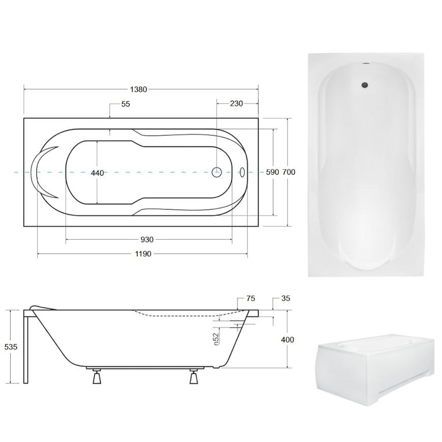 Wanna Bona 140/70 + nogi marki BESCO to nowoczesna wanna prostokątna wykonana z trwałego akrylu sanitarnego. Jej wymiary 138x70x40 cm, pojemność 129 l oraz waga 14 kg zapewniają komfort kąpieli. W komplecie znajduje się stelaż, a syfon Fi 50 ułatwia montaż i stabilne użytkowanie, łącząc funkcjonalność z eleganckim designem łazienki.