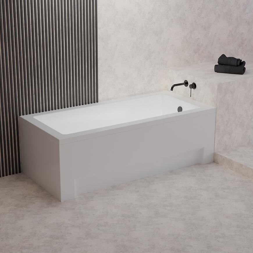 Minimalistyczne wykończenie w białym macie nadaje wannie nowoczesnego charakteru i sprawia, że świetnie komponuje się z różnymi aranżacjami wnętrz – od klasycznych po współczesne. Model sprzedawany jest osobno, bez obudowy, jednak istnieje możliwość dopasowania dedykowanych elementów wykończeniowych o numerach MR-000000001801099 oraz MR-000000001801104, które pozwolą stworzyć spójną i elegancką strefę kąpielową.