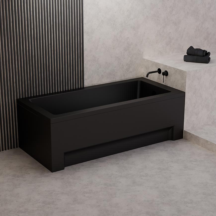 Minimalistyczne wykończenie w czarnym macie nadaje wannie nowoczesnego charakteru i sprawia, że świetnie komponuje się z różnymi aranżacjami wnętrz – od klasycznych po współczesne. Model sprzedawany jest osobno, bez obudowy.