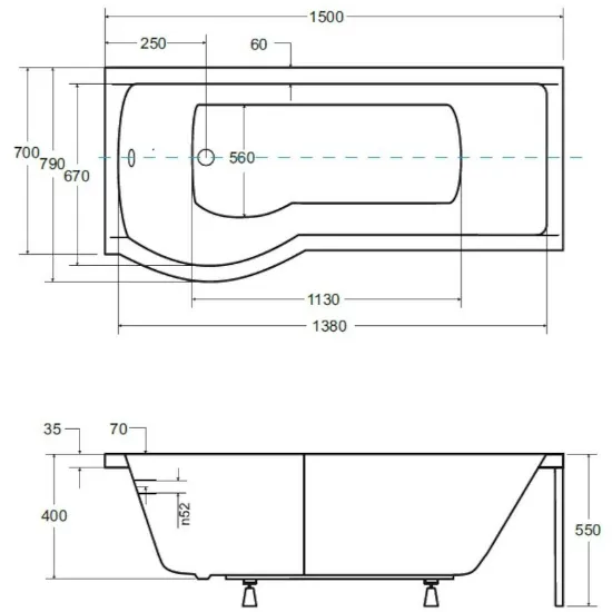 Cena dotyczy wanny bez obudowy i nógSzerokość [cm]: