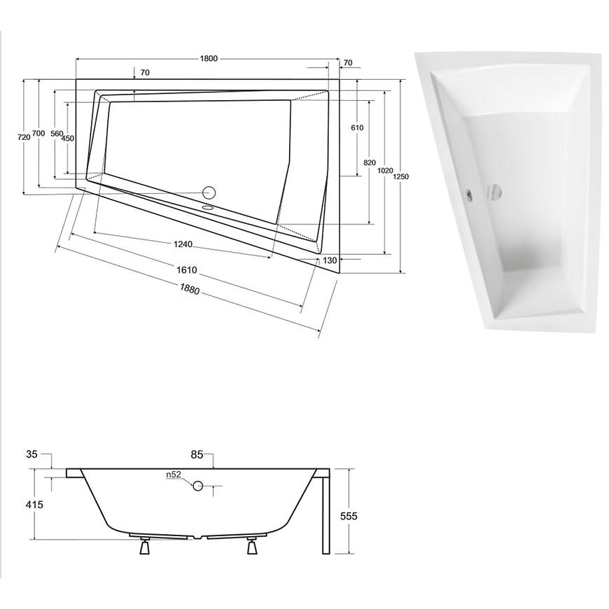 Wanna Intima Duo 180/125 L ze stelażem to przestronna i elegancka asymetryczna wanna akrylowa, stworzona z myślą o pełnym komforcie dla dwóch osób. Dzięki wymiarom 180 × 125 cm oraz głębokości 41,5 cm zapewnia wyjątkowo wygodną przestrzeń kąpielową, a pojemność 280 litrów gwarantuje relaks nawet przy długich kąpielach. Wykonana z wysokiej jakości akrylu sanitarnego, wanna jest trwała, odporna na przebarwienia i łatwa w utrzymaniu czystości. Lekka konstrukcja (30 kg) ułatwia montaż, a dołączony stelaż zapewnia stabilność i wygodę instalacji. Asymetryczny kształt dopasowany do lewej strony pozwala optymalnie zagospodarować przestrzeń łazienki, nadając wnętrzu nowoczesnego charakteru. Ponadczasowy design i subtelne linie sprawiają, że Intima Duo doskonale komponuje się zarówno w łazienkach klasycznych, jak i nowoczesnych. To idealny wybór dla osób poszukujących komfortu, funkcjonalności i stylu dla dwóch osób w jednym produkcie.