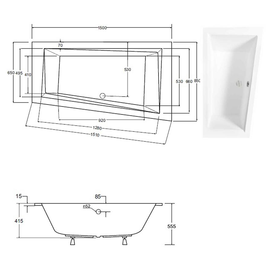 Wanna Intima Slim 150/85 L ze stelażem to elegancka i funkcjonalna asymetryczna wanna akrylowa, która łączy nowoczesny design z komfortem codziennego użytkowania. Jej wymiary 150 × 85 cm oraz głębokość 41,5 cm zapewniają wygodną przestrzeń do kąpieli, a pojemność 168 litrów gwarantuje komfort nawet podczas dłuższych kąpieli. Wykonana z wysokiej jakości akrylu sanitarnego, wanna jest trwała, odporna na przebarwienia i łatwa w utrzymaniu czystości. Lekka konstrukcja (20 kg) ułatwia montaż, a dołączony stelaż zapewnia stabilność i wygodę instalacji. Asymetryczny kształt dopasowany do lewej strony pozwala optymalnie wykorzystać przestrzeń łazienki, a subtelny, nowoczesny design sprawia, że Intima Slim doskonale komponuje się w aranżacjach zarówno klasycznych, jak i nowoczesnych. To idealny wybór dla osób poszukujących komfortu, funkcjonalności i estetyki w kompaktowej formie.