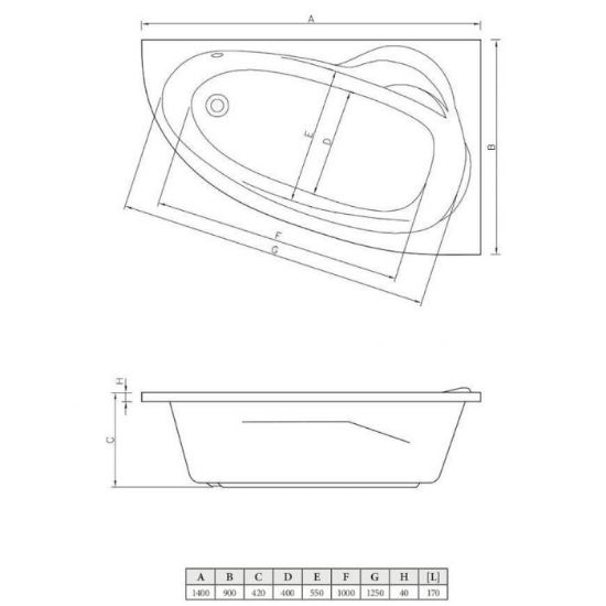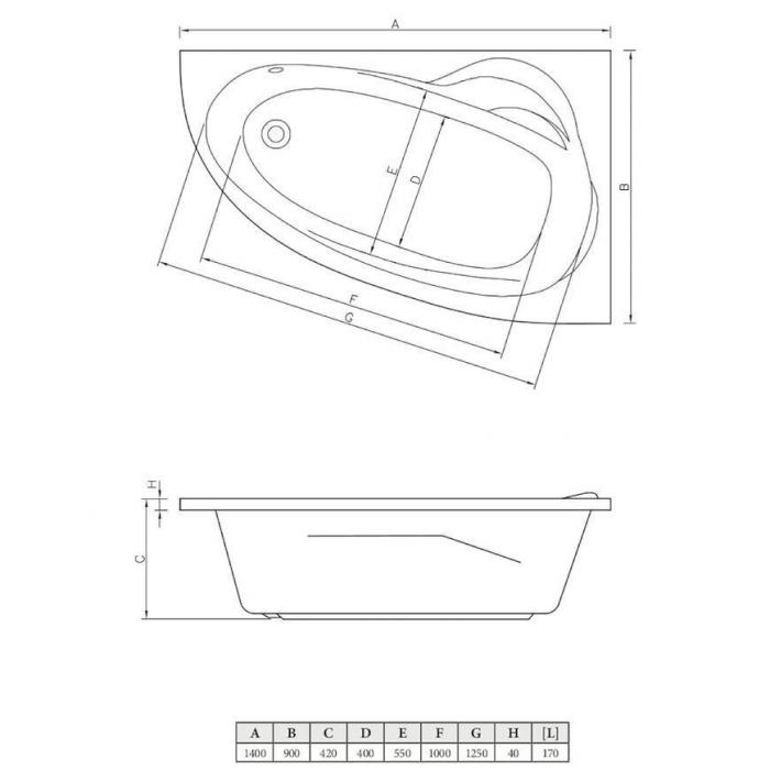 Wanna ma długość 140 cm, szerokość 90 cm i wysokość 42 cm, co zapewnia wystarczającą przestrzeń do komfortowego kąpieli jednej osoby lub dla dzieci. Głębokość 38 cm i pojemność 170 litrów umożliwiają pełne zanurzenie ciała, oferując przyjemne doznania podczas codziennej kąpieli. Produkt jest lekki, waży 18 kg, co ułatwia transport i montaż w wybranym miejscu.