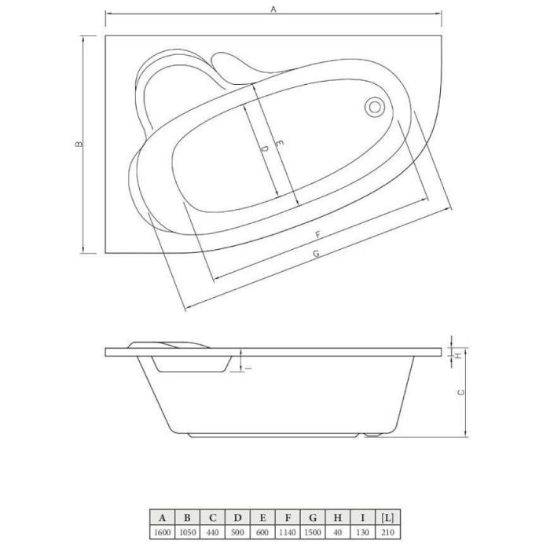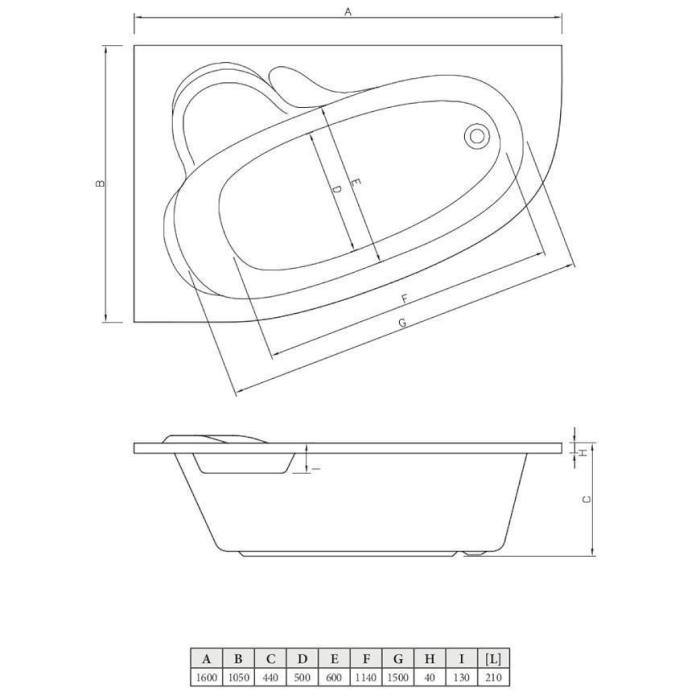 Wymiary 160x105 cm oraz głębokość 46 cm pozwalają na komfortowe korzystanie przez jedną osobę lub relaks w pozycji półleżącej. Pojemność wanny wynosi 210 litrów, co zapewnia optymalną ilość wody do pełnej kąpieli.