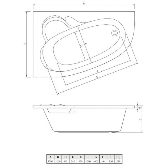 Wanna ma długość 170 cm, szerokość 110 cm i wysokość 54 cm, co zapewnia komfortową przestrzeń dla jednej lub dwóch osób, umożliwiając wygodne zanurzenie się w wodzie. Głębokość 50 cm pozwala na pełną kąpiel, sprzyjając relaksowi i odpoczynkowi. Jej pojemność wynosi 230 litrów, co czyni ją praktycznym rozwiązaniem dla osób ceniących przestrzeń i wygodę podczas kąpieli. Mimo dużych wymiarów, wanna jest lekka i łatwa w instalacji.