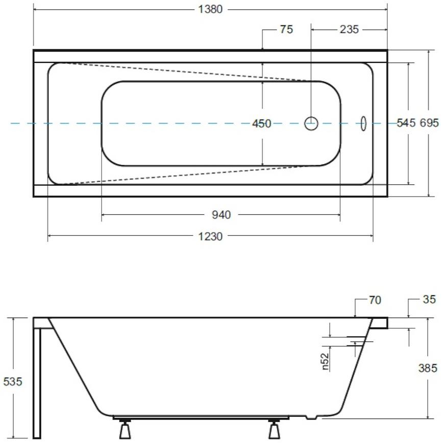 Wanna Modern 140x70 to połączenie ergonomii i stylu. Dzięki odpowiedniemu wyprofilowaniu zapewnia wygodną pozycję ciała podczas kąpieli, a pojemność 136 litrów wystarcza, by w pełni się zrelaksować. Jej kompaktowy rozmiar sprawia, że doskonale pasuje do niewielkich przestrzeni, takich jak łazienki w mieszkaniach, hotelach czy apartamentach.
