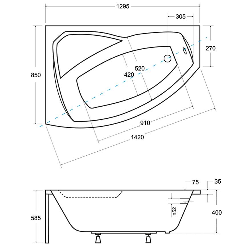 Wanna Rima 130/85 L to nowoczesna asymetryczna wanna wykonana z wysokiej jakości akrylu sanitarnego, który gwarantuje trwałość, odporność na zarysowania i łatwość w utrzymaniu czystości. Jej kompaktowe wymiary – 129,5 × 85 cm, przy wysokości 58,5 cm i pojemności 135 l – sprawiają, że idealnie sprawdzi się w łazienkach o mniejszym metrażu, zapewniając jednocześnie komfortowe warunki do relaksu. Głębokość 40 cm umożliwia wygodne zanurzenie, a ergonomiczny kształt zwiększa wygodę użytkowania. Wanna jest lekka (15,2 kg), a w zestawie znajduje się stelaż, co ułatwia montaż i stabilne ustawienie. Model przeznaczony jest dla osób, które cenią funkcjonalność i estetyczny wygląd w nowoczesnej łazience.