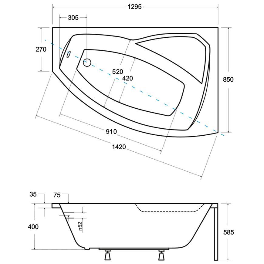Wanna Rima 130/85 P to elegancka asymetryczna wanna wykonana z wytrzymałego akrylu sanitarnego, który zapewnia trwałość, odporność na uszkodzenia i łatwe utrzymanie w czystości. Jej kompaktowe wymiary – 129,5 × 85 cm, wysokość 58,5 cm oraz pojemność 135 l – sprawiają, że doskonale pasuje do łazienek o ograniczonej przestrzeni, nie rezygnując przy tym z wygody. Głębokość 40 cm gwarantuje komfortową kąpiel, a ergonomiczny kształt zwiększa przyjemność użytkowania. Wanna jest lekka (15,2 kg), co ułatwia montaż i transport. W komplecie znajduje się stelaż, który zapewnia stabilność i solidne osadzenie. To praktyczny wybór do nowoczesnych łazienek, łączący funkcjonalność i estetyczny design.