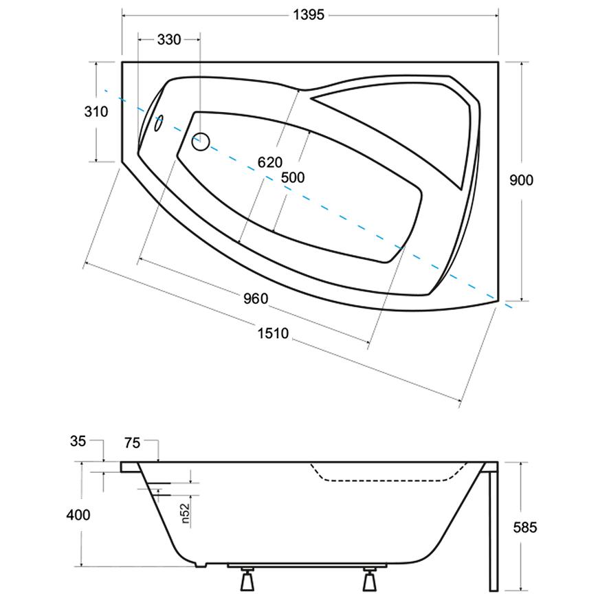Wanna Rima 140/90 P to elegancka asymetryczna wanna, stworzona z wysokiej jakości akrylu sanitarnego, który zapewnia odporność na zarysowania, przebarwienia i łatwe utrzymanie czystości. Jej wymiary – 139,5 × 90 cm, wysokość 58,5 cm i pojemność 165 l – oferują komfortową przestrzeń do kąpieli, także w średnich łazienkach. Głębokość 40 cm oraz ergonomiczny kształt zwiększają wygodę użytkowania. Wanna waży 16,9 kg, co ułatwia montaż i transport, a w komplecie znajduje się stelaż, zapewniający stabilność i pewne osadzenie. To połączenie praktyczności, komfortu i nowoczesnego designu, idealne do każdej łazienki.