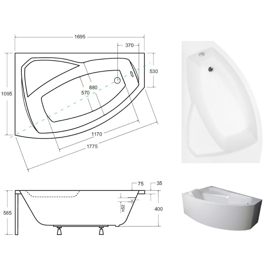 Wanna Rima 170/110 L to przestronna asymetryczna wanna, wykonana z wytrzymałego akrylu sanitarnego, który zapewnia odporność na zarysowania, przebarwienia i łatwe utrzymanie w czystości. Jej wymiary – 169,5 × 109,5 cm, wysokość 58,5 cm oraz pojemność 215 l – gwarantują komfortową kąpiel nawet dla osób preferujących większą przestrzeń. Głębokość 40 cm i ergonomiczny kształt zwiększają wygodę użytkowania. Wanna waży 25 kg, co ułatwia transport i montaż, a w zestawie znajduje się solidny stelaż, zapewniający stabilne osadzenie. Idealna do nowoczesnych łazienek łączących funkcjonalność i elegancki design.